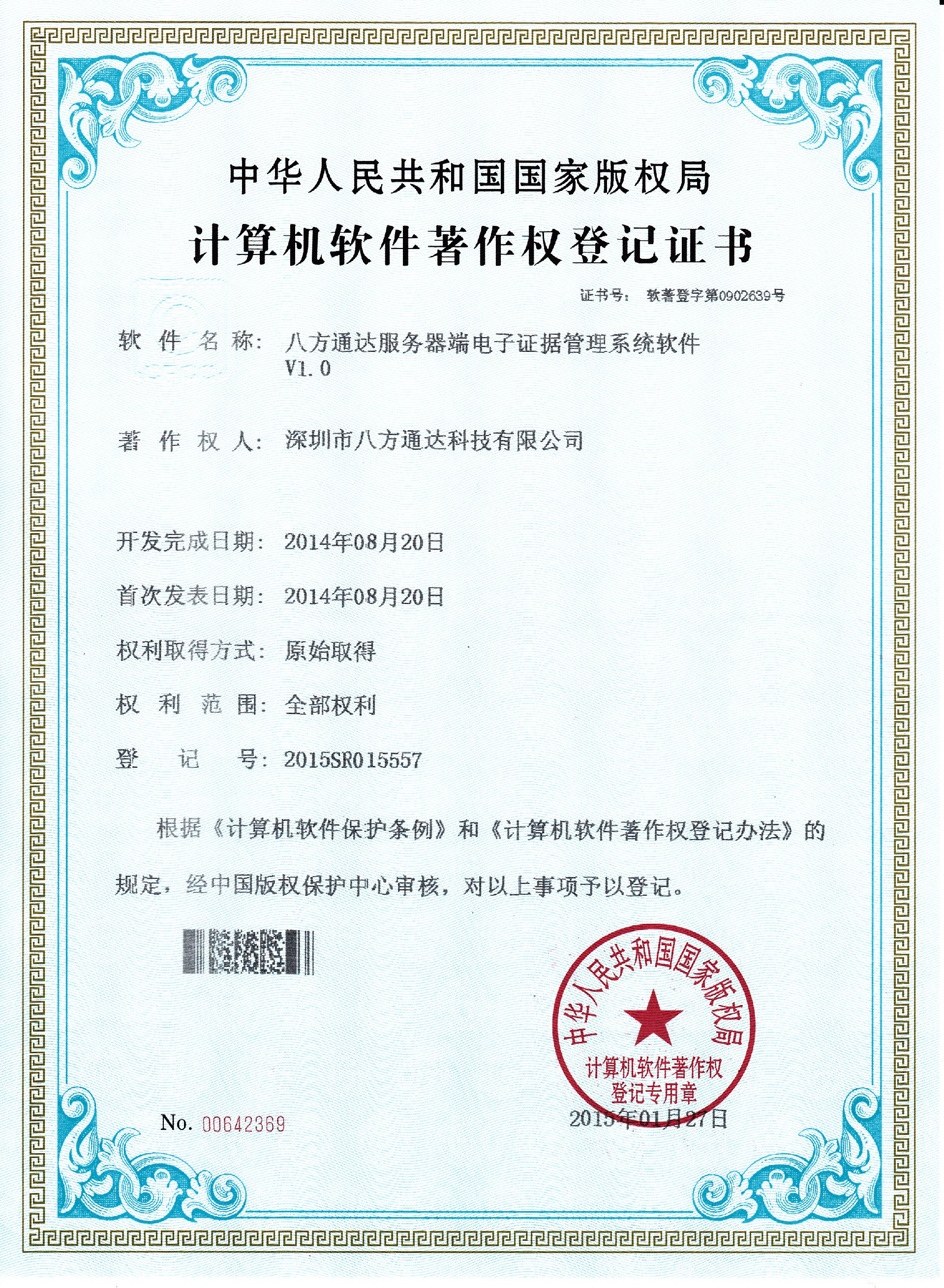 研發(fā)出首款電子單警執(zhí)法視音頻記錄系統(tǒng)管理平臺(tái)并申請(qǐng)了相關(guān)軟件著作權(quán)7項(xiàng)