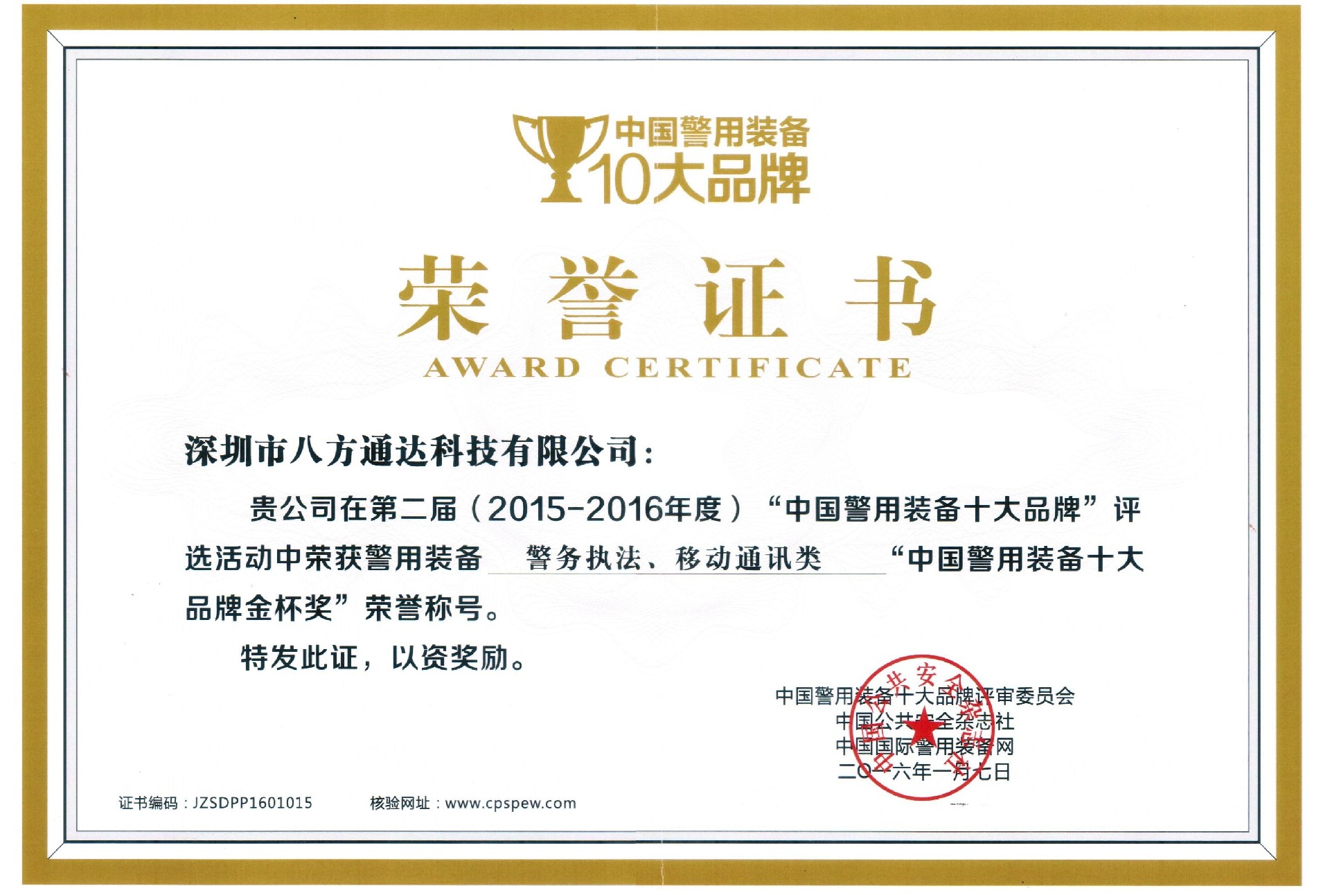 警用裝備十大品牌金杯獎(jiǎng)