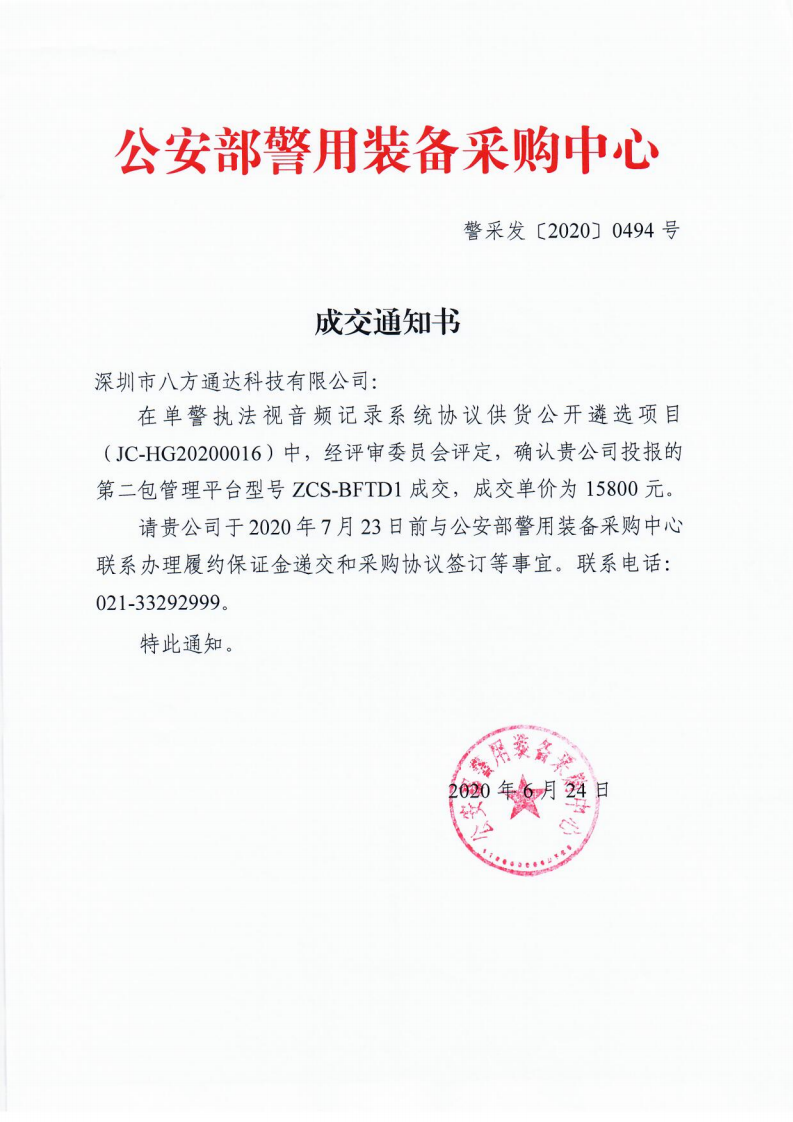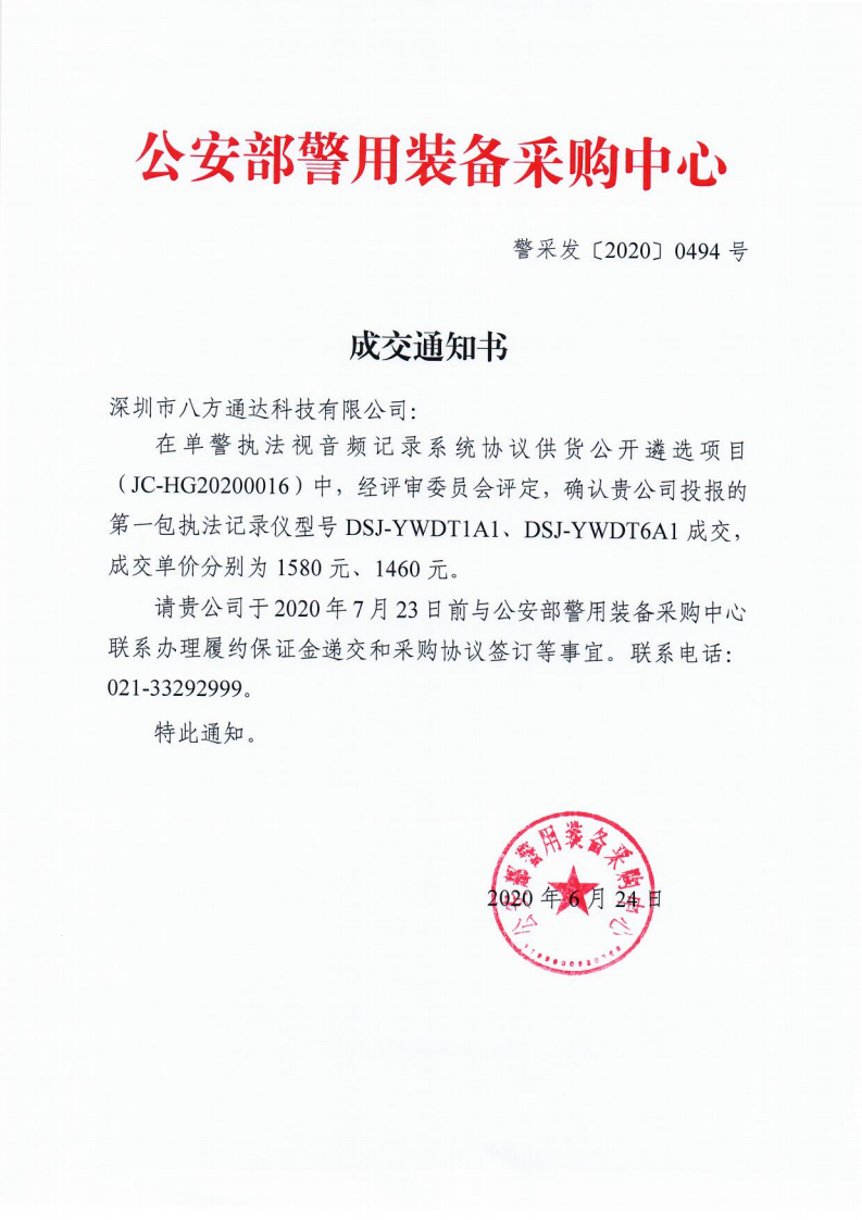 入圍2020年公安部警用裝備采購(gòu)中心協(xié)議供貨單位
